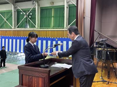 卒業記念品贈呈 立中詩乃さん