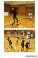 初めはストラックアウトの的まで届かなかった子も最後には的まで届くようになり、1時間程の野球教室でしたが “できた!楽しい“と、友だちと喜び高校生とハイタッチをしていました。