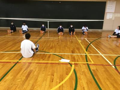 今回は3年生から1年生に体育でのサーキットトレーニングやストレッチなどを4班に別れて明るく楽しく元気よく、丁寧に指導してくれました。
