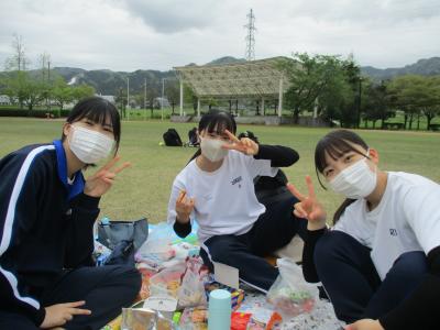 行きは、生徒が自主的に清掃ボランティアを行い、自分たちの町をきれいにしながらレクトピアパークに向かいました。