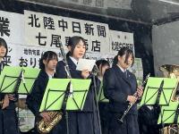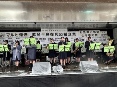 5月25日(日)に、道の駅「織姫の里なかのと」で開催された「またまた!中能登音楽フェスタ 〜中能登に響け!復興魂!」に参加し、「スプリングフィールド」「ジブリコレクション」の2曲を披露してきました。今年度より外部コーチとして宮田清孝さまをお迎えすることができ、新しく入部した、1年生2名のパーカッションの響きも高らかに、新たな一歩を踏み出しました。