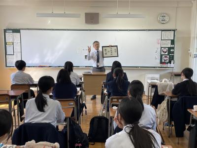 生徒らは自分事として捉え、時々メモを取りながら話を聞いていました。