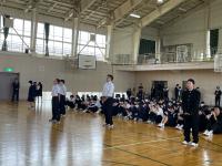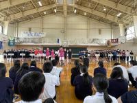 また壮行式のなかで応援委員会による応援がありました。短期間の練習で堂々と立派に務めてくれました。大きな声で校歌と応援歌を選手団におくりました♪