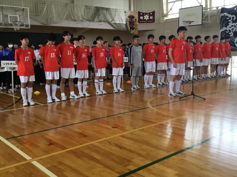 今週から始まる総体・総文の壮行式が行われました。3年生にとっては最後の大会となる生徒もいます。これまでの成果を発揮してきてください。