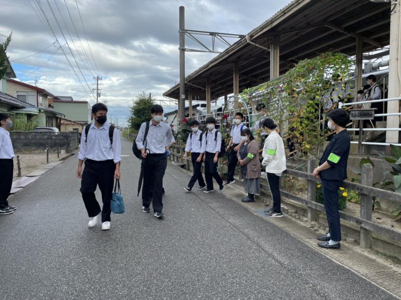 「おはよう!」「朝ご飯食べてきたか?」などの声かけをいただきながら、生徒が元気に登校しました。