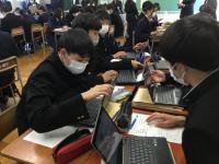 この公開研究授業を通して、端末を単に使用するのではなく、教科や単元の特性に応じて効果的に活用することについて、教科全体で深く考えることができました。今後も生徒の主体的で対話的な深い学びに繋げられるよう研究を重ねて参ります。