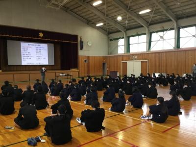 感染症対策を万全にして、外部から講師をお招きし、「将来の進路の選び方」をテーマに講演していただきました。