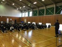 新人戦を終えて、新たな気持ちで学校生活を送ろう!自分の進路についてしっかりと考えよう!という目的で学年集会を開きました。学年主任から「頑張り始めるのは、今!」「自分の頭で考える姿勢・努力を大切にして学びを深める。」、藤原先生から「どんな大人になりたいか?どんな大人になりたくないか。自分に自信を持って、本物になる。」、校長先生から「時間を大切にして。前に進めなくなった時は、加点法で。」というメッセージと、「復習・確認・言い訳しない」という11月の目標を教えていただきました。これからの自分について考える時間となり、新たな決意を持ってくれたことと思います。