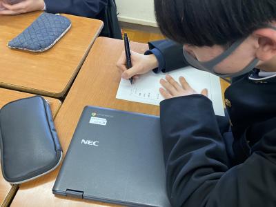 3学期始業式で、校長先生から「自分なりの目標を立てましょう。目標達成できるようにしましょう」というお話がありました。学年末考査に向けて、どのくらい計画的に学習できたでしょうか?力試しです!自分の持っている力を存分に発揮してください。