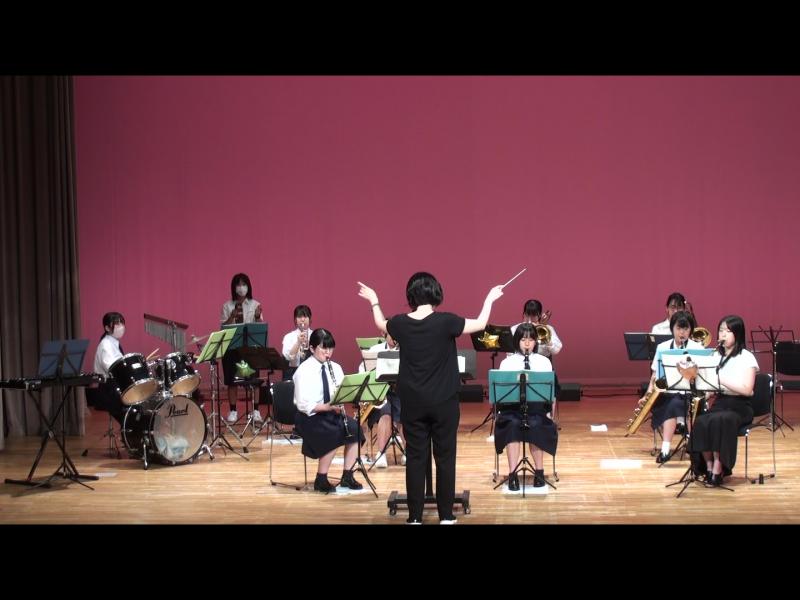 創立50周年を迎える本校の校歌から始まり、流行曲や、来てくださった方が懐かしいと感じていただけそうなメドレー曲、吹奏楽の定番曲を演奏しました。