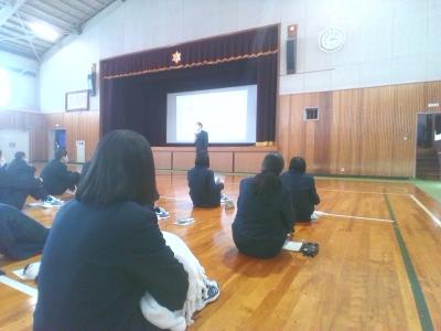 進路実現のための学習時間や進路先についての考え方、大学受験に際しての活動報告書から読み取る「求められている力」について触れて、「自分で問題点を発見」し「課題解決に向けて実践」するよう主体的に自分を育成する姿勢の重要性について改めて確認をしました。3月には、どのように過ごすかを自分で判断しなければならない時間が多くなるため、周囲と差をつけるチャンス。「今だからこそできること」についての話でした。
