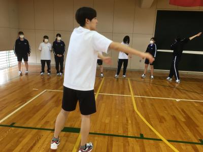 今回は3年生から1年生に体育でのサーキットトレーニングやストレッチなどを4班に別れて明るく楽しく元気よく、丁寧に指導してくれました。