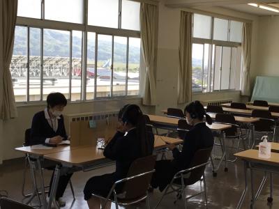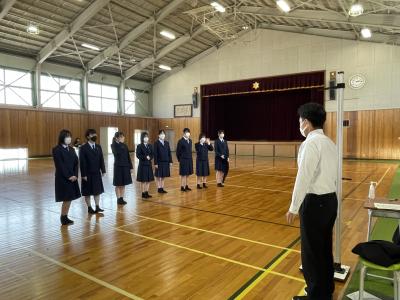 視力、聴力、身長、体重を本校職員が計ります。各クラス5~10名程のグループを作り、密を避け実施しました。計測前後には元気の良い挨拶をし、鹿高生らしい姿が見られました。