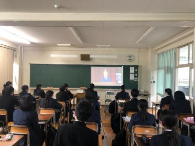 本日から「総合的な探究の時間」が始まり、1年生全体でオリエンテーションを、その後各教室で振り返りを行いました。