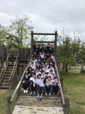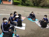 ソーシャルディスタンスを意識して昼食をとりました。入学式以来初めての学校行事で、クラスメイトとの親睦を深めることができました。