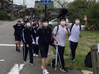 行きは、生徒が自主的に清掃ボランティアを行い、自分たちの町をきれいにしながらレクトピアパークに向かいました。