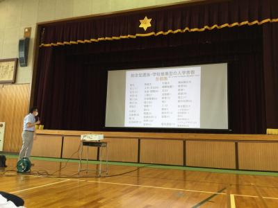本日、講師に山内太地先生をお招きして、「県外国公立大学のすすめ」というテーマでお話ししていただきました。県内志向になりがちな志望校選びですが、視野を広く持ち、自分が学びたいことを学べる大学を全国から探し出すべきだというアドバイスに、生徒たちは感銘を受けていました。2年生になり、進路を具体的に考えていかなければならない今の時期に、とても為になるお話しでした。