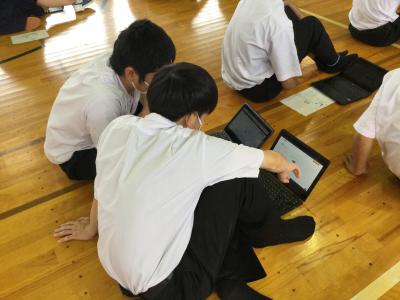今回のワークは個人・ペア・グループは問わず、それぞれの興味や関心によって分かれて行いました。中にはクラスを横断してグループを組んでいる生徒もいました。