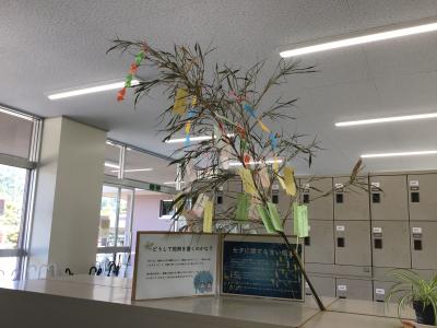 生徒玄関には季節を感じられる七夕・笹が飾られています。勉強や部活動に一生懸命な毎日ですが、七夕飾りを見て季節を感じる余裕があるといいですね。