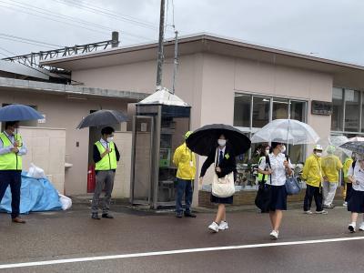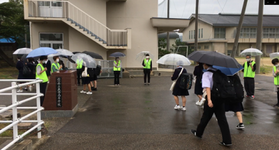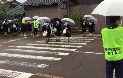 9月21日(水)グッドマナーキャンペーンを実施しました。PTA生活指導委員会の皆さんと生徒会役員、公安委員、本校職員が自転車マナー指導と挨拶運動を行いました。雨が降っていたため能登部駅付近、学校付近は車の交通量も多かったです。日頃からマナーを守って安全に登校してください。ご参加してくださった皆さま、ありがとうございました。