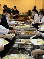 本日の昼食は、沖縄名物のタコライス。みんな元気よく食べています。