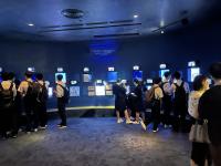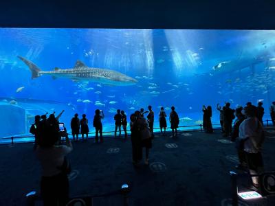 珊瑚の海やジンベイザメなどが展示されている大水槽に生徒は釘付けです。