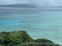 写真では伝わりにくいですが、こんな天気にも関わらず、きれいなエメラルドグリーンの海が広がっています。