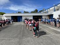 修学旅行も折り返しを過ぎ、今日は美ら海水族館と体験活動です。天気が心配ですが、希望の虹を信じて見ます。