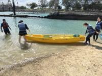 まずはカヌー体験。乗り込むのもなかなか難しく、バランスを崩すと転覆します。