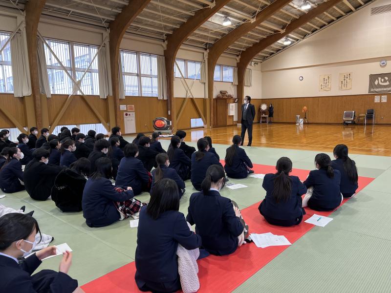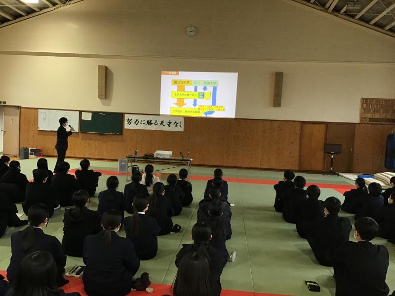 大学進学を希望している生徒は進路指導課主任の木下先生から大学入試に関するお話を聞きました。