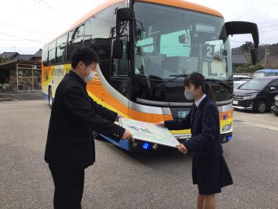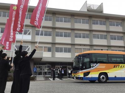 テストに向けて出発する3年を職員と生徒が見送りました。