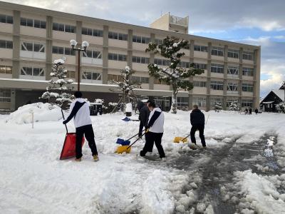 登校した生徒から自主的に除雪作業をしてくれました。厳しい寒さのなか、自ら誰かのために作業してくれる生徒がたくさんいるのが鹿西高校です。生徒の皆さん、登下校の安全や時間に気をつけましょうね。