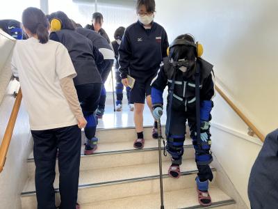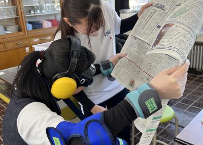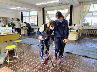 中能登町社会福祉協議会の方をお招きし、高齢者疑似体験を行いました。