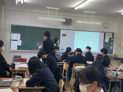 一昨日に続き1年生がクラス読書会を行いました。第2回目の今回は話し合いや発表なども行いました。