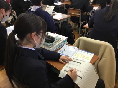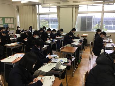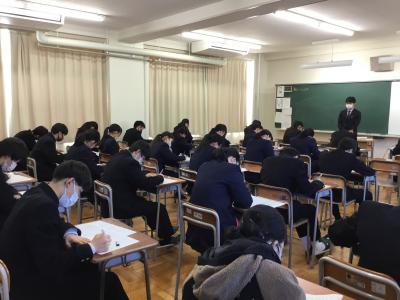 3学期始業式で、校長先生から「自分なりの目標を立てましょう。目標達成できるようにしましょう」というお話がありました。学年末考査に向けて、どのくらい計画的に学習できたでしょうか?力試しです!自分の持っている力を存分に発揮してください。