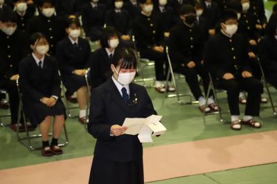 校長先生からは「自分で考える力を身に付けましょう。そのためには基礎的な知識の蓄積が大切です。また、自分の周りにいる家族、友人、地域の人、様々な人を大切にできる人になってほしいです。大切とは相手を理解し、思いやることだと思います。自分を、相手を大切にできる人になってください。」という新入生への言葉がありました。