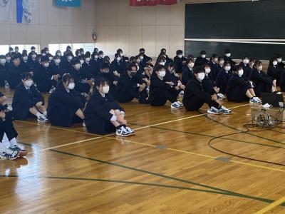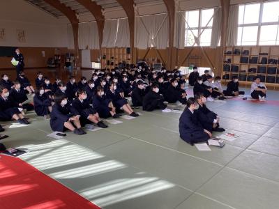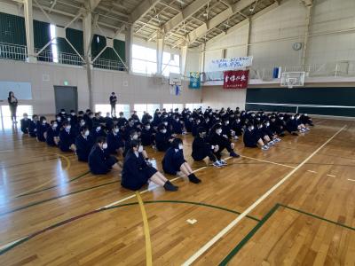 自分の安全を守ることを第一に考え、避難指示に従って全校生徒が第1体育館に無事集合しました。消防の方からは、行動が迅速であったと良い評価を頂きました。