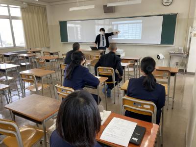 「大学・短大」、「専門学校」、「就職・公務員」の3分野に分かれ、それぞれの受験日程や試験方法、志望校の情報収集の仕方や求人についてなど、各分野の細かな内容についてのお話がありました。生徒は昨日配布された手帳にメモを取りながら、真剣な表情で話を聞いていました。