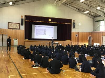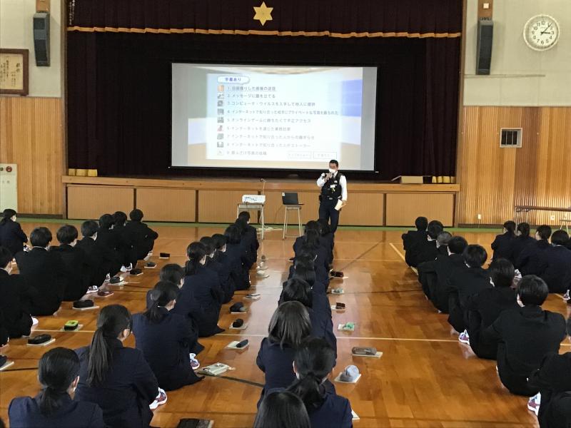 4月12日(水)鹿西駐在所の方をお招きし、1年生を対象にスマートフォンやSNSを使う際の注意点を指導していただきました。