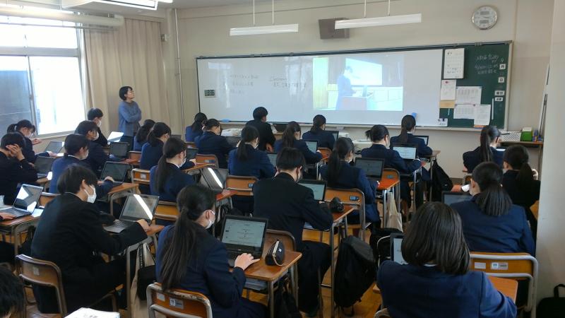 今日は学年全体で、卒業生の発表動画を参考に、課題設定について考えました。