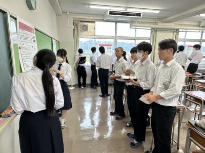 県下10校の中学校から約180名の参加があり、本校生徒による学校紹介を皮切りに、授業体験や部活動見学、在校生と語る会を通し、鹿西高校での学びや生活について知ってもらう良い機会となりました。在校生と語る会では、高校生活への不安や疑問をざっくばらんに質問する中学生の姿もみられ、非常に充実した時間になったようです。