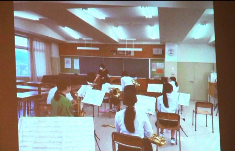 創立50周年を迎える本校の校歌から始まり、流行曲や、来てくださった方が懐かしいと感じていただけそうなメドレー曲、吹奏楽の定番曲を演奏しました。