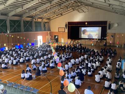 大会2日目の25日(金)はパフォーマンス集団「白A」によるプロジェクションマッピングから始まり、開会行事、表彰式を終えた後、記念講演を聴き閉会となりました。2日間を通して充実した素晴らしい大会でした。PTA会長や職員がこの大会を通じて得たことを今後の鹿西高校のさらなる活性化に役立てていきたいと思います。