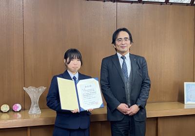 2年生 河内椛音さんが、第43回全国高校生読書体験記コンクール(一ツ橋文芸教育振興会主催)で入選しました!河内さんは「読書感想文を書くことを考えて本を選びました。入選できて嬉しいです。これからも本を読みたいと思います。」とコメントしました。
