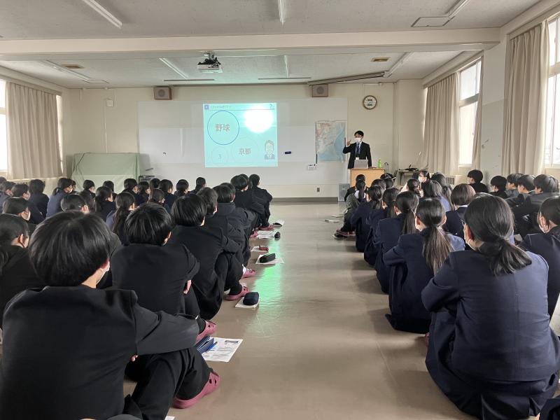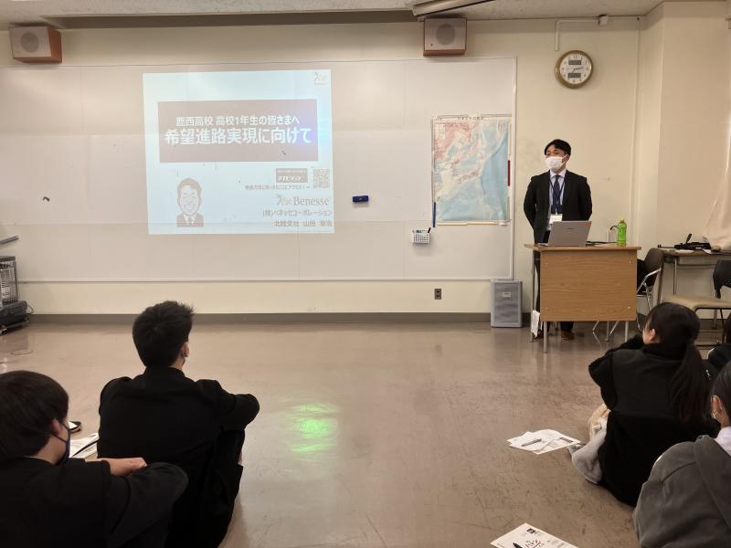 2月21日(水)7限 視聴覚教室にて、(株)ベネッセコーポレーション北陸支社 山田 章浩氏を講師としてお招きし、第一学年進路講演会を開催しました。