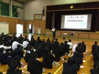 新人戦を終えて、新たな気持ちで学校生活を送ろう!自分の進路についてしっかりと考えよう!という目的で学年集会を開きました。学年主任から「頑張り始めるのは、今!」「自分の頭で考える姿勢・努力を大切にして学びを深める。」、藤原先生から「どんな大人になりたいか?どんな大人になりたくないか。自分に自信を持って、本物になる。」、校長先生から「時間を大切にして。前に進めなくなった時は、加点法で。」というメッセージと、「復習・確認・言い訳しない」という11月の目標を教えていただきました。これからの自分について考える時間となり、新たな決意を持ってくれたことと思います。