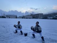野球部は雪の上でトレーニングをすることもあります。