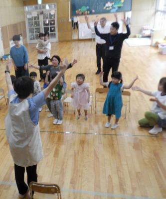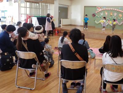 4月22日(火)0歳1歳2歳児のお子さんが乳幼児教室開始式に参加しました。幼稚部4歳児の出し物を見たり、校長先生からメダルをもらったりしました。今年度も、楽しく活動しましょうね。