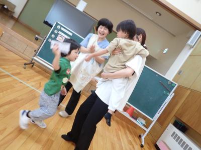 『ちょっとこわいなぁ…』とお父さんお母さんにぎゅっと抱き着く子、鬼に近づいてまめまきをする子。その時の気持ちを受け止めて、親子で共感しながら活動に参加していました。