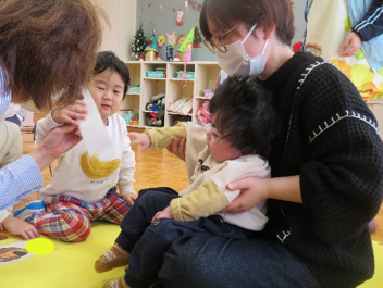 いっしょにお名前呼びをしたり、絵本を見たり楽しみました。